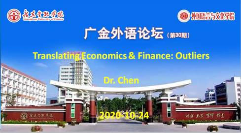 2020年10月24日,翻译系陈定刚博士主讲第30期广金外语论坛,在线上为大家带来了一次关于经济与金融翻译的讲座,会议由beat365唯一官方网站洪溪珧博士主持,包括广东省高级人民法院外事办主任屈伸和beat365唯一官方网站黄中习院长在内的近百名位翻译工作者和师生聆听了陈博士内容丰富的专业讲座。