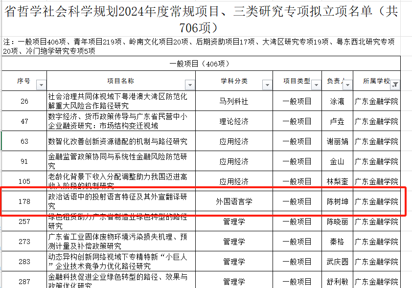 在最近公布的省哲学社会科学2024年度规划项目立项名单中,beat365唯一官方网站的陈树坤博士申报的《政治话语中的投射语言特征及其外宣翻译研究》项目脱颖而出,成功获得立项。