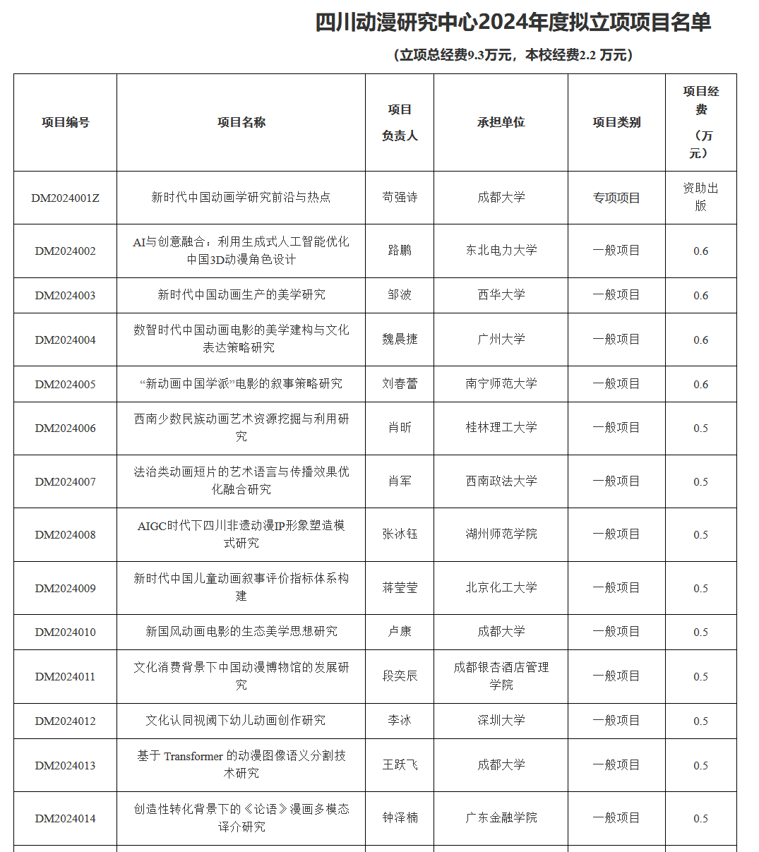 四川动漫研究中心的评审工作经过了“单位审核推荐”、“专家分组评议”和“中心审核”三个阶段的严格审核,确保了立项项目的质量和创新性。本年度拟立项的项目总数为25个,涵盖了专项项目、一般项目、自筹项目以及研究生专项项目等多个类别。 钟泽楠老师的成功立项,体现了beat365唯一官方网站在学术研究和文化传承方面的努力与成就。学院将继续支持教师参与高水平的科研项目,以促进学术研究与文化创新的进一步发展。