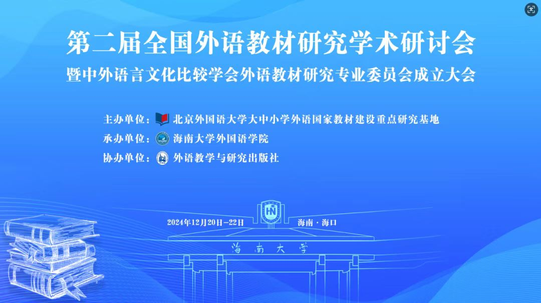 据悉,本次全国外语教材研究学术研讨会由北京外国语大学大中小学外语国家教材建设重点研究基地主办,海南大学外国语学院承办,外语教学与研究出版社协办。大会主题为“外语教材研究:新理念、新方法、新形态”,300多位来自国内外的外语教材研究专家学者、教材编写者与教材使用教师齐聚椰城,共同探讨外语教材和外语教育的创新发展。