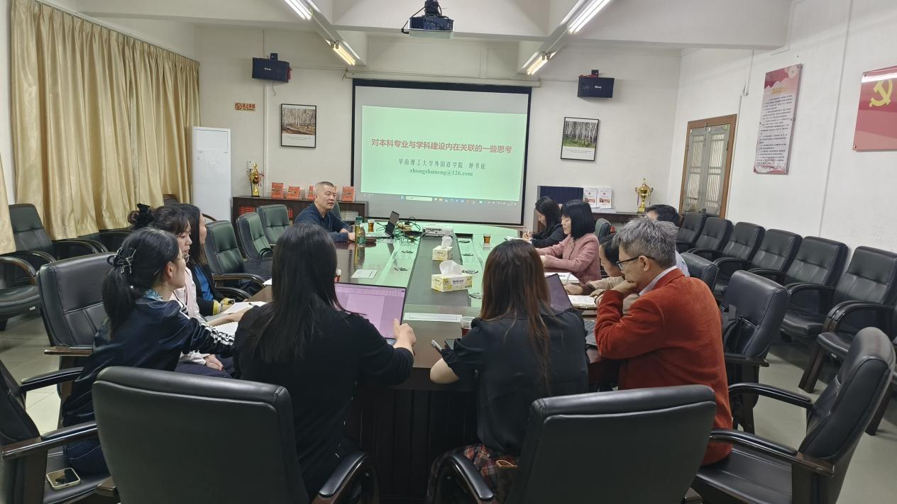 4月7日,华南理工大学外国语学院钟书能教授应邀来beat365官网座谈,围绕“对本科专业与学科建设内在关联的一些思考”这一主题进行学术交流。本次座谈会由涂兵兰院长主持,洪溪珧、陈树坤、甘容辉副院长,各系主任及科研骨干教师共同参与。