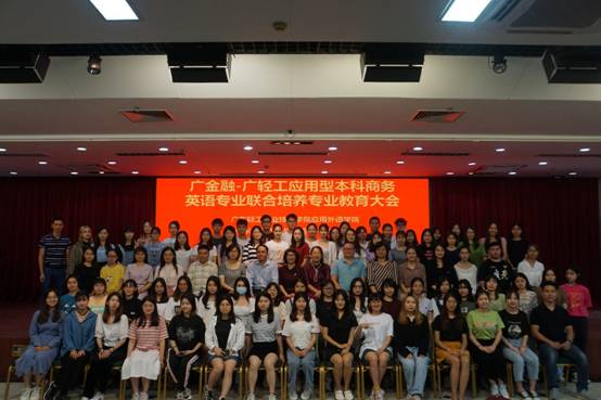 孙智慧副院长详细解读了广金融-广轻工协同培养的商务英语专业本科班的人才培养方案,介绍了专业课程设置与教学要求,从外语专长、人文素养、国际视野、中国情怀和校本特色五个方面向同学们讲解了课程设置的目的,着重强调全体学生一定要学好外语专长,要逐步提高专业的新台阶。