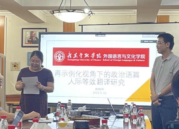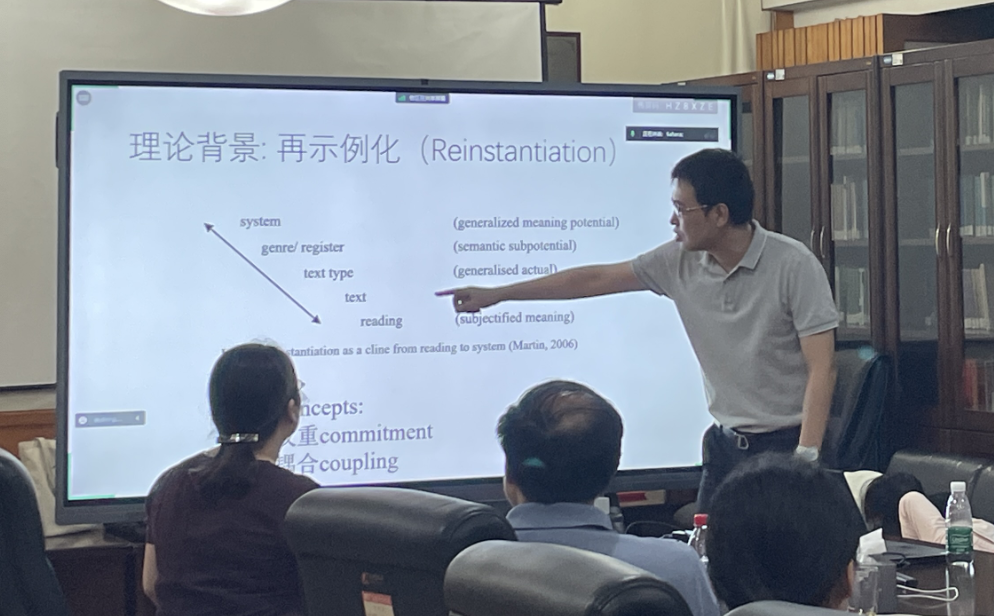 2023年9月19日下午,“韩礼德文献中心学术沙龙”第四期在外国语学院韩礼德文献中心(外国语学院222室)成功举办。beat365官网翻译系陈树坤博士应邀作客沙龙主讲,讲座主题为“再示例化视角下的政治语篇人际等效翻译研究”。中山大学王勇教授、常晨光教授,华南农业大学杨曙教授,澳门大学王博助理教授,香港理工大学马园艺博士以及多位中山大学、广东外语外贸大学在读博士生参加了此次沙龙。沙龙由中山大学功能语言学研究所主办,中山大学陈静副教授主持。