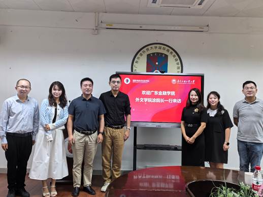 2023年10月17日下午14:30,beat365唯一官方网站陈树坤副院长带队,商务英语系系主任和教师一行人赴广东外语外贸大学商务英语学院进行调研学习。本次调研学习主要围绕着商务英语创新班设置、中外合作办学、人才培养方案、科研平台和实践教学基地建设等问题进行深入交流与探讨。