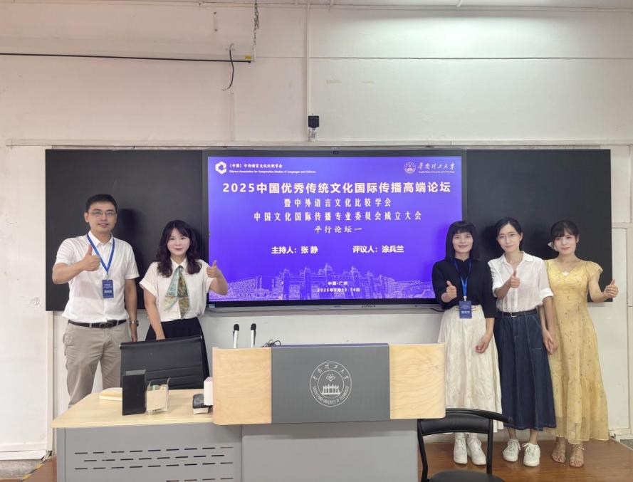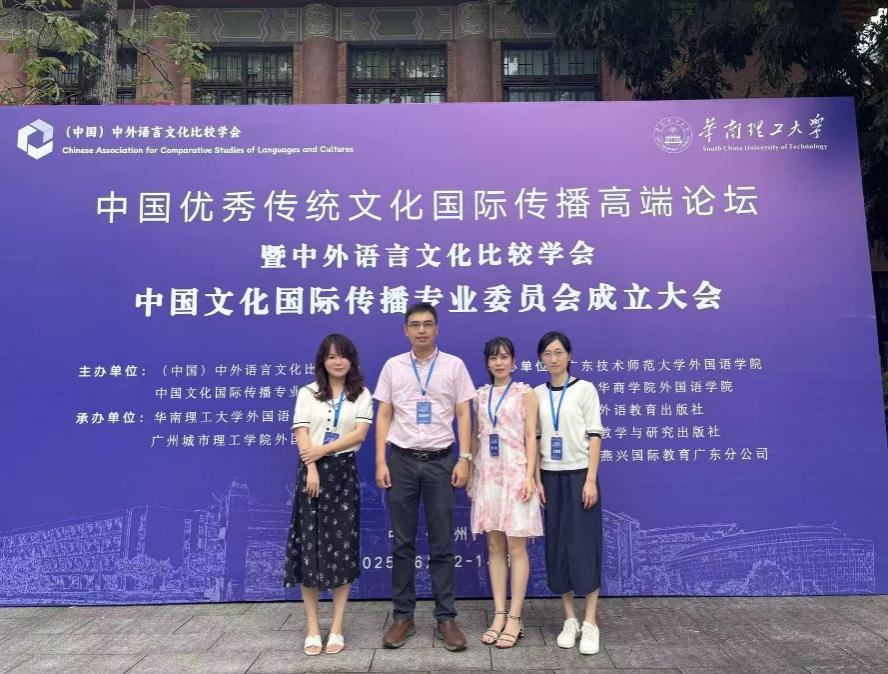 6月13日至14日,beat365唯一官方网站涂兵兰院长带领陈树坤、唐姗、余薇、于雪莹等4位博士参加由中外语言文化比较学会中国文化国际传播专业委员会主办,华南理工大学外国语学院、广东城市理工学院外国语学院承办的“2025中国优秀传统文化国际传播高端论坛”。本次论坛聚焦中国优秀传统文化的国际传播,旨在深入探讨翻译策略、创新传播、人工智能赋能等前沿话题,为提升中国文化软实力和国际话语权贡献力量。