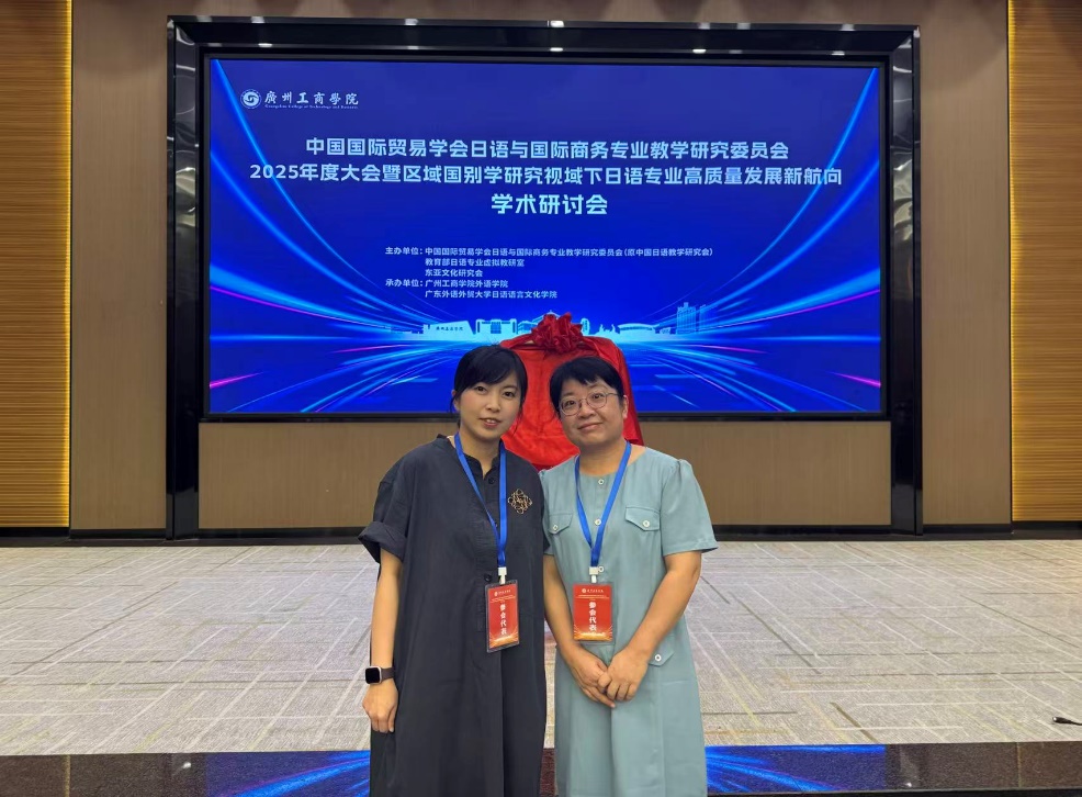 2025年9月26日至28日,由中国国际贸易学会日语与国际商务专业教学研究委员会、教育部日语专业虚拟教研室及东亚文化研究会联合主办,广州工商学院与广东外语外贸大学联合承办的“2025年度大会暨区域国别学研究视域下日语专业高质量发展新航向学术研讨会”在广州成功举办。beat365唯一官方网站日语系主任李莹副教授与黄跃瑜老师共同出席了这一全国性高端学术盛会。