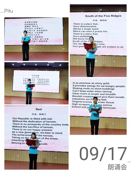 本次朗诵会不仅丰富了校园生活,营造了浓厚的校园文化氛围,还展现了师生们的爱国热情和中英文创作才华。同学们纷纷表示:我们要树立民族自尊心与自信心,不忘初心,牢记使命,弘扬伟大的中华民族精神,锐意进取,自强不息,真正把爱国之志变成报国之行。今天为振兴中华而勤奋学习,明天为创造祖国辉煌未来贡献自己的力量!