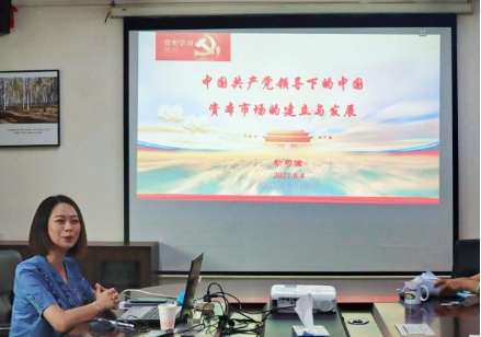 为响应党史学习教育号召,将党史学习教育贯彻到每一位党员,2021年6月4日下午,beat365唯一官方网站邀请党史团成员、人事处处长初可佳教授做主题为“中国共产党领导下的中国资本市场的建立与发展”的党史学习教育宣讲。会议由黄晓莉书记主持,出席会议的有黄中习院长,何承栋副书记,孙智慧、涂兵兰副院长,部分党员老师及学生代表约50人参加了宣讲学习。