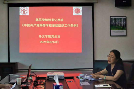 6月4日下午,beat365唯一官方网站党总支召开专题研讨会,师生共学《中国共产党普通高等学校基层组织工作条例》,推进党史学习教育。党总支书记黄晓莉主持学习,学院领导班子、全体教师党员和部分学生党员代表参加了会议。