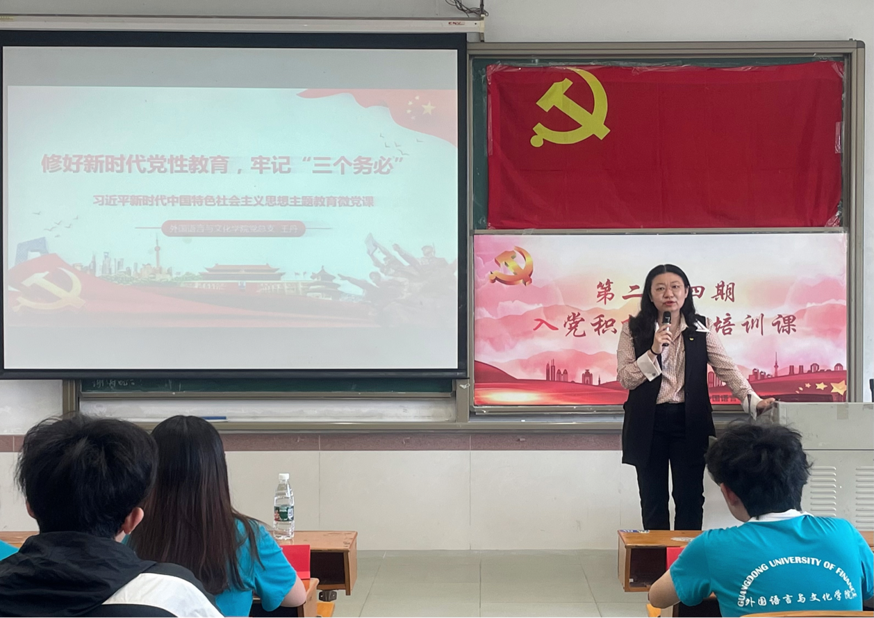 beat365官网黄庆雄书记、王丹副书记、学生第一党支部书记邓伟琦老师、学生第二党支部书记邓粲士老师、19级学生党员吴少莹分别为全体入党积极分子做专题辅导。