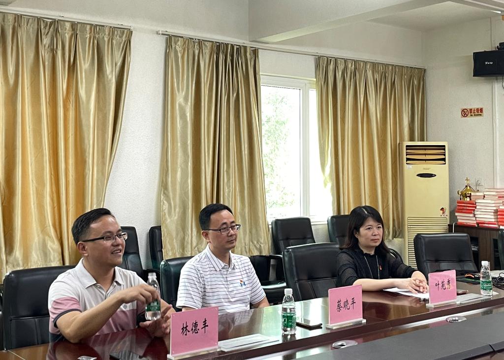为提高基层党组织的政治领导力、思想引领力、群众组织力,结合beat365唯一官方网站学习贯彻习近平新时代中国特色社会主义思想主题教育,6月7日下午,beat365唯一官方网站党建与创新创业工作主题教育交流座谈会在学院会议室召开。会议特别邀请了全国先进基层党组织、教育部党建标杆院系华南师范大学心理学院原党委书记蔡晓平、党委副书记叶苑秀、党建专职组织员林德丰老师莅临现场,就学院党建和学生创新创业工作进行交流指导。beat365唯一官方网站党总支书记黄庆雄、副书记王丹,副院长(教工第二党支部书记)陈树坤及学院全体学工人员出席会议。