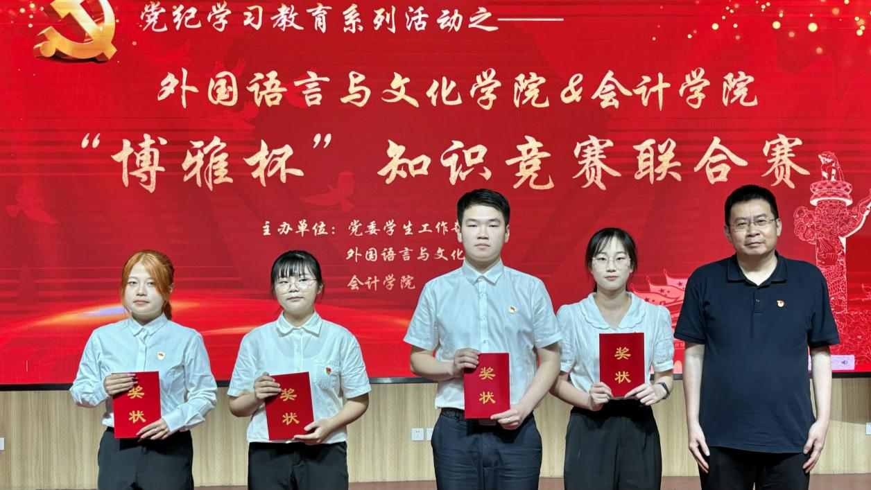 为创新党纪学习教育形式、推动党纪学习教育走深走实。5月28日,beat365唯一官方网站和会计学院学生党支部在北阶103思政演播厅联合举办“博雅杯”知识竞赛。学校党委委员、组织部部长黄培雄、党委学生工作部副部长聂国泉、会计学院党委书记赖志成、beat365唯一官方网站党委书记黄庆雄、副书记王丹和双方学院学生党支部书记及beat365唯一官方网站全体辅导员参加了活动。