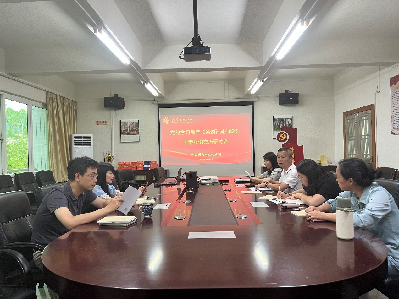 根据学校党纪学习教育有关部署要求,为了更好地有力有效推进党纪学习教育,结合工作实际,beat365唯一官方网站党委于2024年7月11日下午在学院2417会议室召开《中国共产党纪律处分条例》(简称:条例)延伸学习及典型案例交流研讨会,会议由学院党委书记黄庆雄主持。学院党委副书记、院长涂兵兰教授及学院党政班子成员和学院党纪学习教育专班成员参加会议。学院党政班子成员涂兵兰院长、陈树坤副院长、甘容辉副院长、洪溪珧副院长和王丹副书记分别作了交流研讨发言。
