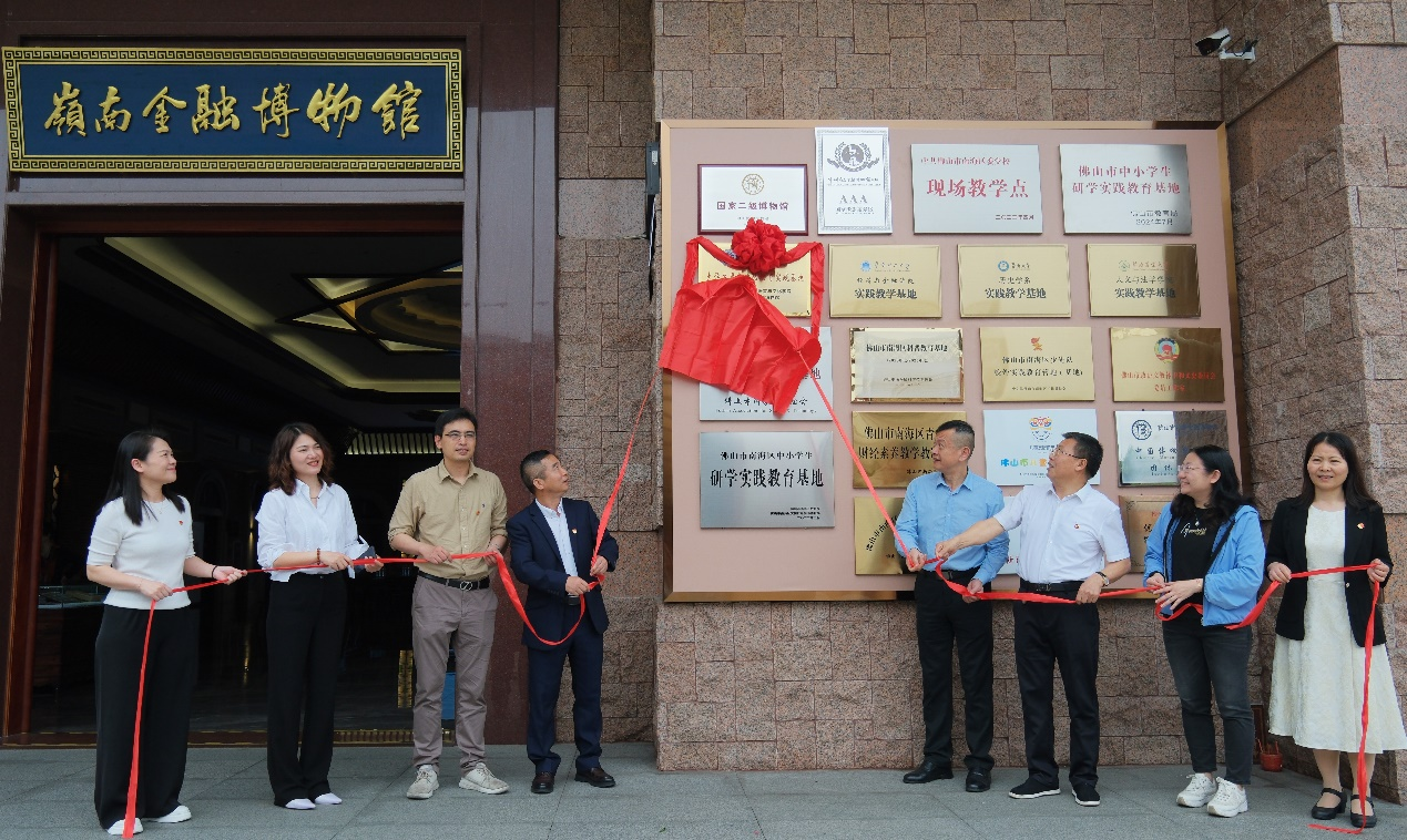 广东省文化和旅游厅博物馆与社会文物处处长颜永树、佛山市岭南金融博物馆馆长丁方忠、副馆长李士英、beat365唯一官方网站党委书记黄庆雄、副院长陈树坤、洪溪珧、党委副书记王丹等领导嘉宾共同为实践基地揭幕。红绸掀开的一刻,标志着beat365唯一官方网站与佛山市岭南金融博物馆在思政教育、文化传承领域的合作迈向新高度。
