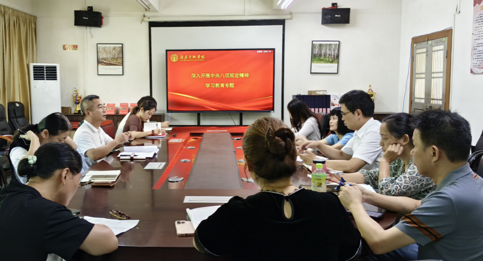 专题学习会还系统总结beat365唯一官方网站从今年3月份以来学习教育开展情况,巩固拓展作风建设成果。会上,学院党委书记黄庆雄代表学院党委通报《深入贯彻中央八项规定精神学习教育开展情况总结报告》。他从三个方面通报学院开展学习教育以来的工作成效:(一)深化理论武装,筑牢思想根基。自今年3月学习教育开展以来,学院党委严格落实“学查改”一体推进要求,组织学院党委理论学习中心组专题学习10次,参加学校中层干部专题读书班,主办“扬清风正气·守廉洁初心”中央八项规定精神主题书画展,以“党纪铭心砺初心,博学笃行谱华章”为主题举办第八届“博雅杯”知识竞赛,实现党员干部学习全覆盖。通过“三会一课”、主题党日等载体,组织学院“双百行动”“百千万工程”师生志愿服务队分别前往大埔县、广宁南街街道护国社区开展社会实践活动,用青春力量赋能助力文化传承与乡村振兴贡献力量。深入开展《中央八项规定及其实施细则》专题研讨,组织党员干部赴廉政教育基地开展沉浸式教学3次,推动作风建设理论入脑入心。形成学院“党委牵头抓总、支部具体落实、党员全员参与”的工作格局。(二)坚持问题导向,狠抓整改落实。对照问题导向问题,学院党委牵头查摆梳理出“毕业论文审核工作流程繁琐”等事项,全面查摆“四风”突出问题,重点纠治“政绩观偏差”“形式主义”“违规吃喝”等顽疾,建立问题清单,深挖思想根源,对学习教育学院班子集体问题清单台账3条进行落实整改、对班子成员个人查摆的问题清单7条落实个人整改,此外学院党委对各党支部的54名教工党员和29名学生党员查摆的83条问题进行审核把关、纠偏导正,切实解决师生急难愁盼问题。(三)强化警示教育,增强廉洁意识。组织党员干部观看警示教育片,通过剖析反面典型案例,深刻揭示违规违纪行为的原因和危害,以此教育引导党员干部自觉遵守中央八项规定精神,筑牢廉洁自律的思想防线。6月5日,学院党委组织召开全院教工党员深入学习贯彻中央八项规定精神学习教育会。会上,学院党委书记领学第一议题“党的十八大以来深入贯彻中央八项规定精神的成效和经验”,并结合学习教育开展以来的工作实际,向全体党员系统解读中央八项规定出台的背景、核心要求和实践意义。同时,结合违反中央八项规定精神的典型案例,从师德师风学术道德、教学纪律、服务意识、工作态度、举止言行以及学院25届毕业生就业落实等各个方面,强调学院全体党员教师要深刻领会中央八项规定精神的实质,坚定以德立身、以德施教的信念,坚守师德底线的决心,筑牢拒腐防变的思想防线,切实改进工作作风,提高工作效率和服务质量,推动学院各项工作高质量发展。