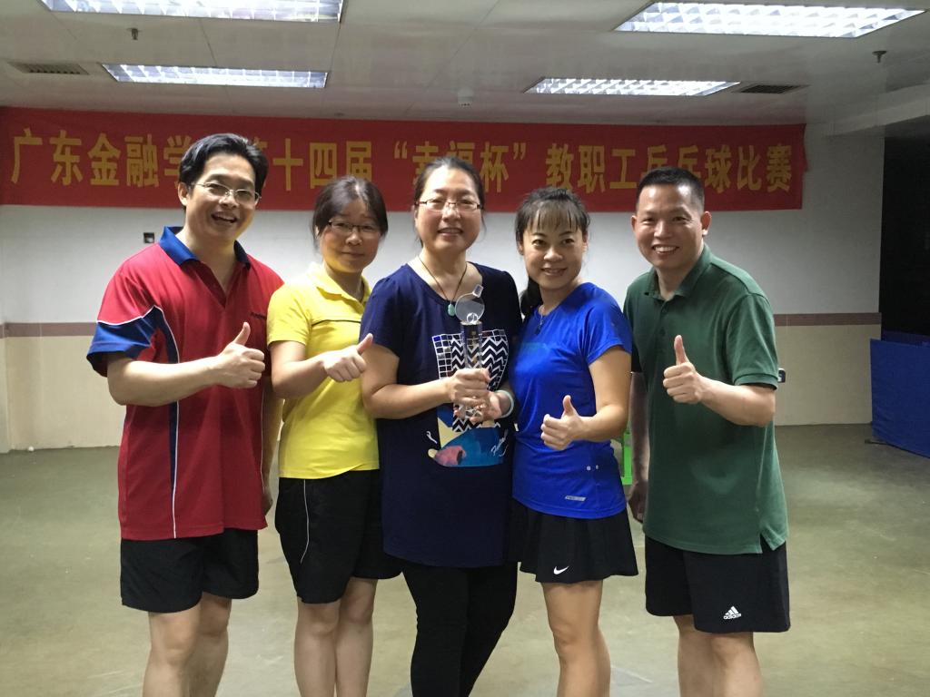 beat365官网因上一届比赛中因为较好的成绩成为种子队之一,分配在高手如云的甲A组(有经贸学院、金投学院等队伍)的第五小组,在4月23的循环比赛中对阵数学学院、教务处、继续教育学院等其他五支队伍。beat365唯一官方网站乒乓球队在李昌郴(单打、混双)和吴之凯(女单、混双)为主力的带领下,以五战全胜的战绩排名小组第一,晋级24日的比赛。在24日的比赛中,beat365官网对阵的对手实力明显增强很多。beat365官网乒乓球队以友谊第一、比赛第二的轻松心态积极应战,在与会计学院的比赛中再次以全胜战绩晋升四分之一决赛,遭遇上届比赛的亚军金投学院队,我队在整体发挥中,赛出了水平、展示了老师们团结合作的精神面貌,彰显了体育精神和不怕苦不怕累精神,最终获得季军的好成绩。