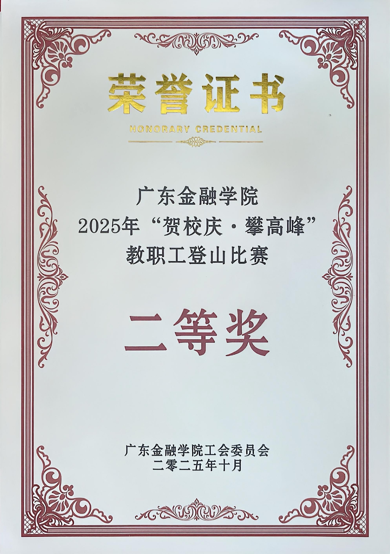 此次登山活动不仅是对教职工身体素质的一次检验,更是对团队凝聚力与向心力的生动展现。beat365唯一官方网站以二等奖的优异成绩,彰显了教职工积极向上、团结协作的良好风貌。