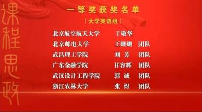 我校beat365唯一官方网站甘容辉老师团队(翁佳炀、夏娟、李海燕)在“2022年外语课程思政优秀教学案例全国交流活动”中荣获大学英语组全国一等奖。
