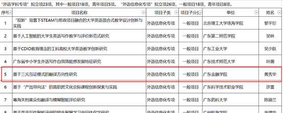 英语系黄秀华博士获得广东省哲学社会科学规划2023年度“外语专项”