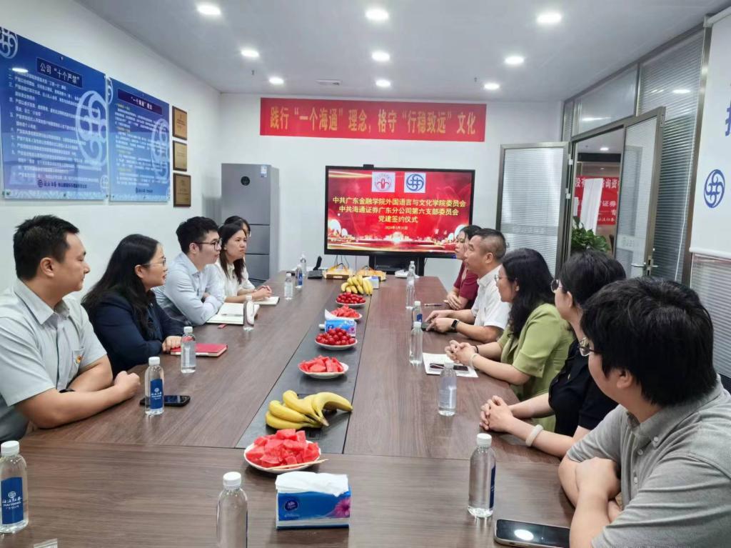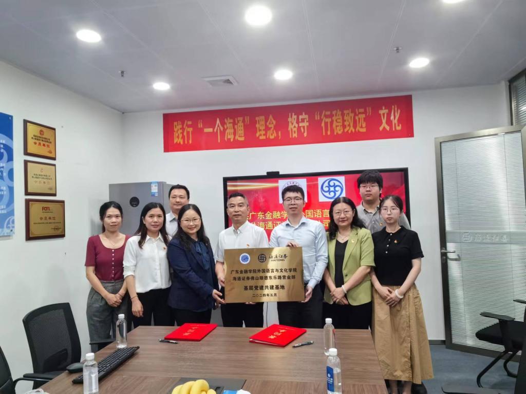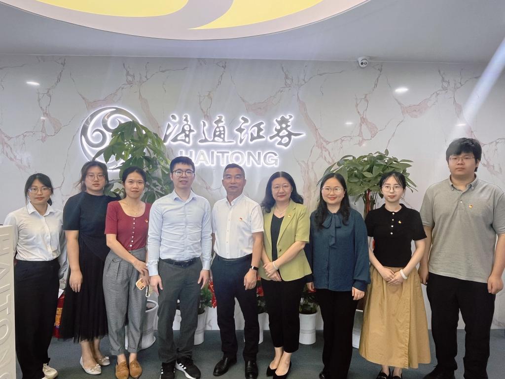 为贯彻落实党中央、国务院关于“稳就业”“促就业”决策部署,更好地把教育部“访企拓岗促就业专项行动”落到实处,5月31日上午,beat365唯一官方网站党委书记黄庆雄带领学工队伍一行赴海通证券佛山顺德东乐路营业部开展党建共建活动和访企拓岗合作洽谈,促进大学生充分高质量就业。海通证券顺德营业部总经理胡南涛,营业部营销总监、海通证券股份有限公司广东分公司第六支部书记宋燕飞和支部辖属中山营业部负责人、预备党员阮伟明,党员李玉萍同志等出席了交流座谈。beat365唯一官方网站党委副书记王丹及全体辅导员随行参会。
