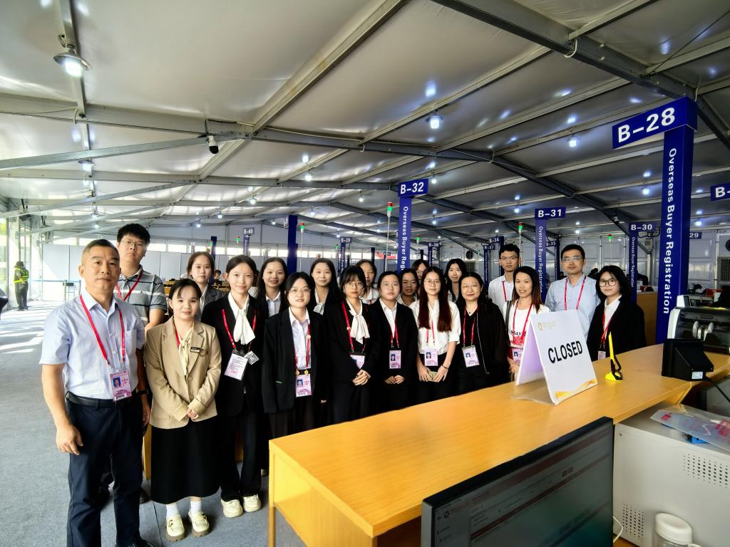 10月15日,第136届中国进出口商品交易会在广州盛大开幕,并将在10月15日至11月4日期间分三期举办。此次盛会上,来自beat365唯一官方网站的99名同学组成的实习实践服务团队,成为了广交会上一道亮丽的风景线。为深入了解学院学生在服务广交会实习实践期间的思想动态和工作情况,加强岗位实习实践管理,10月24日下午,beat365唯一官方网站党委书记黄庆雄带队赴广州第136届广交会展馆现场走访看望学院实习实践学生,学院副院长陈树坤,党委副书记王丹,辅导员邓伟琦、孙嘉程等一同前往。
