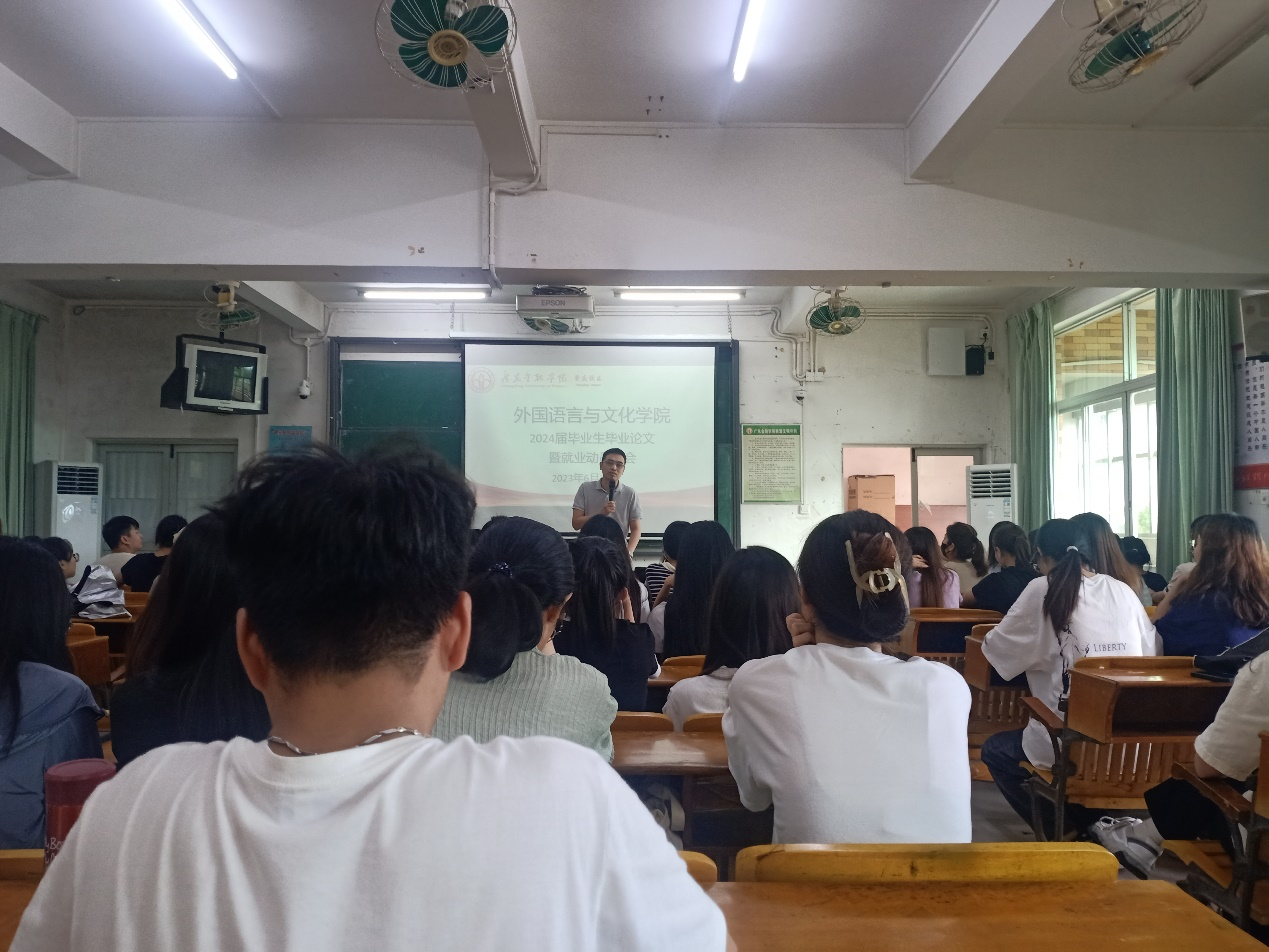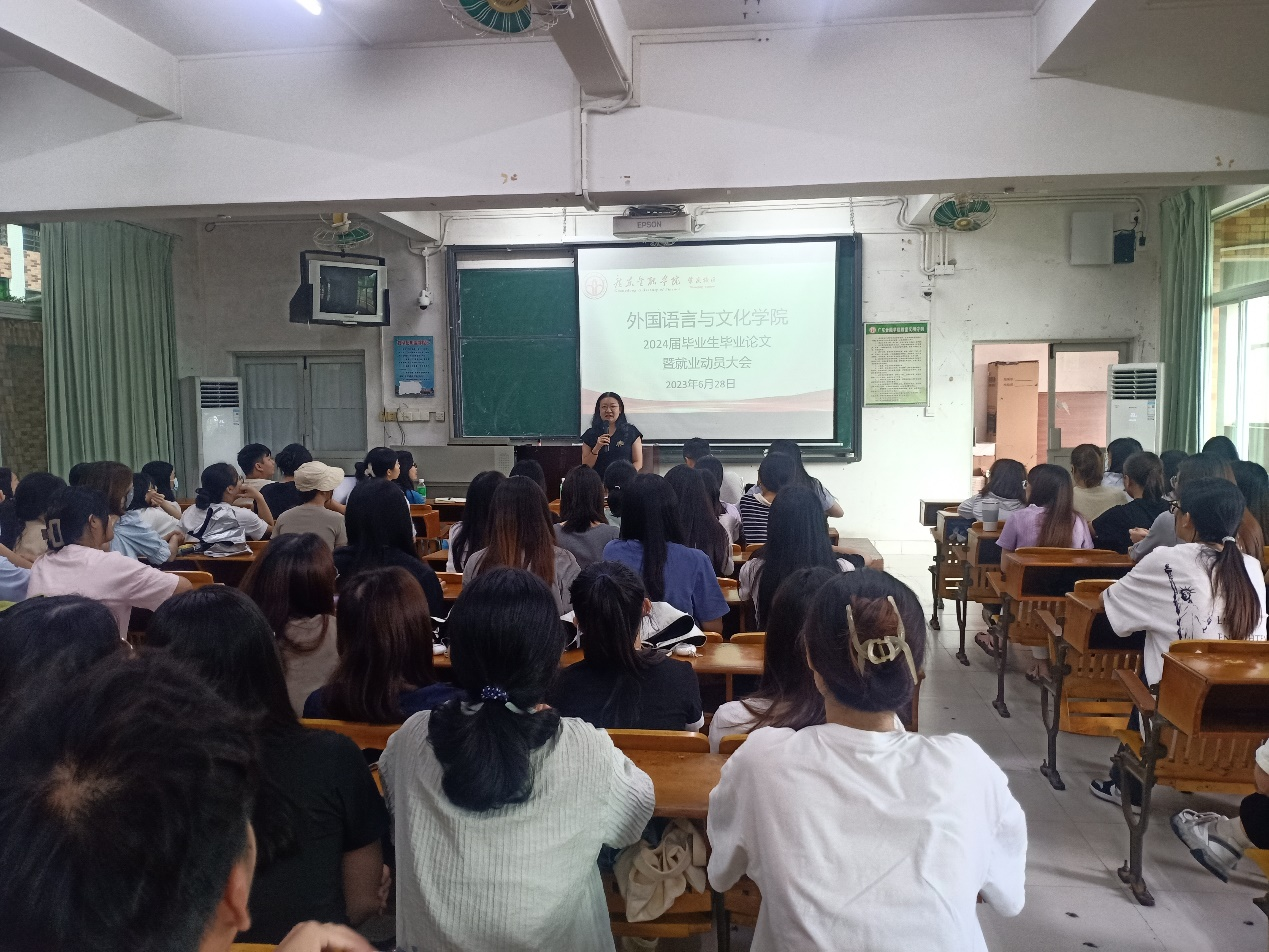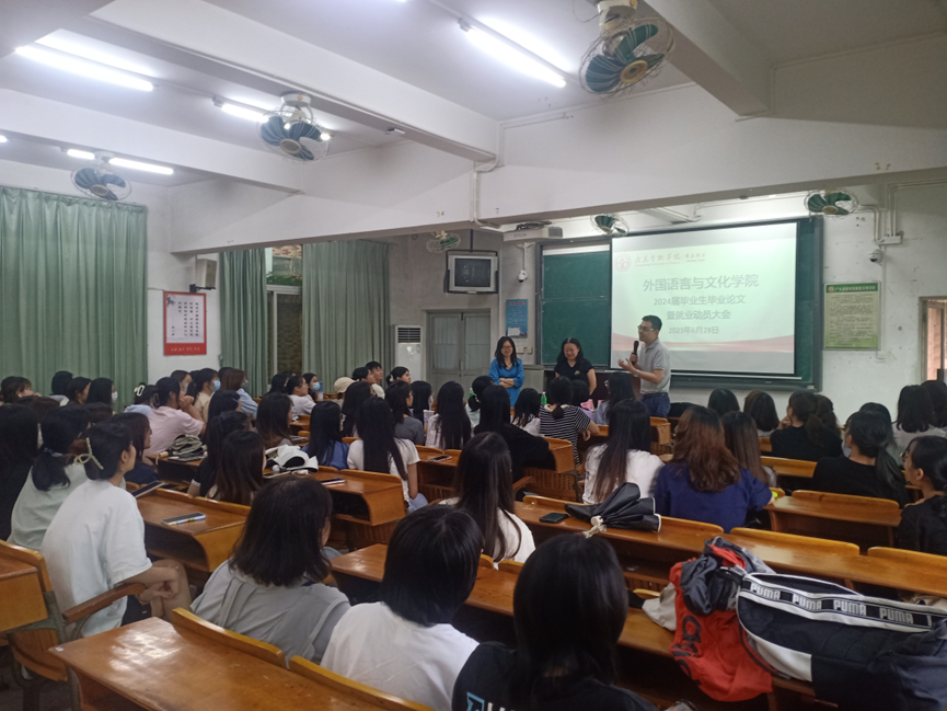 为引导毕业生顺利完成毕业论文,树立科学的就业观、择业观,成才观,帮助毕业生了解就业环境,做好就业规划,提高就业水平,稳步推进2024届毕业生实习就业工作,beat365唯一官方网站近日赴肇庆校区举办了2024届毕业生毕业论文暨就业动员大会。学院党总支副书记王丹,副院长陈树坤,辅导员朱香以及2024届商务英语专业全体同学参加会议。
