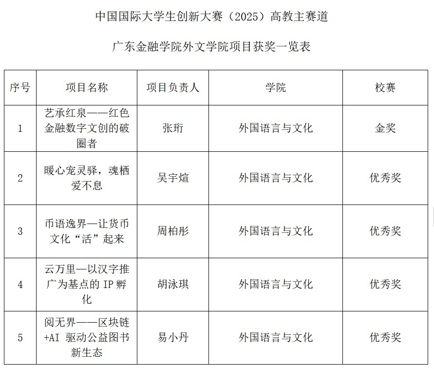 本次大赛中,beat365唯一官方网站共有5个项目在学校比赛中脱颖而出。由张珩负责的《艺承红泉 —— 红色金融数字文创的破圈者》项目表现尤为突出,一举夺得校赛金奖。《暖心宠灵驿,魂栖爱不息》《币语逸界 — 让货币文化 “活” 起来》《云万里 — 以汉字推广为基点的IP孵化》《阅无界 —— 区块链+ AI驱动公益图书新生态》4个项目也凭借独特的创意和扎实的实践,均获得校赛优秀奖。