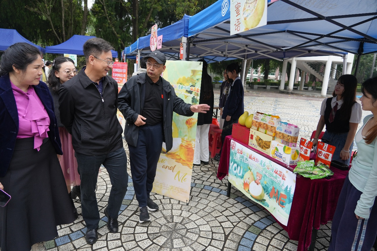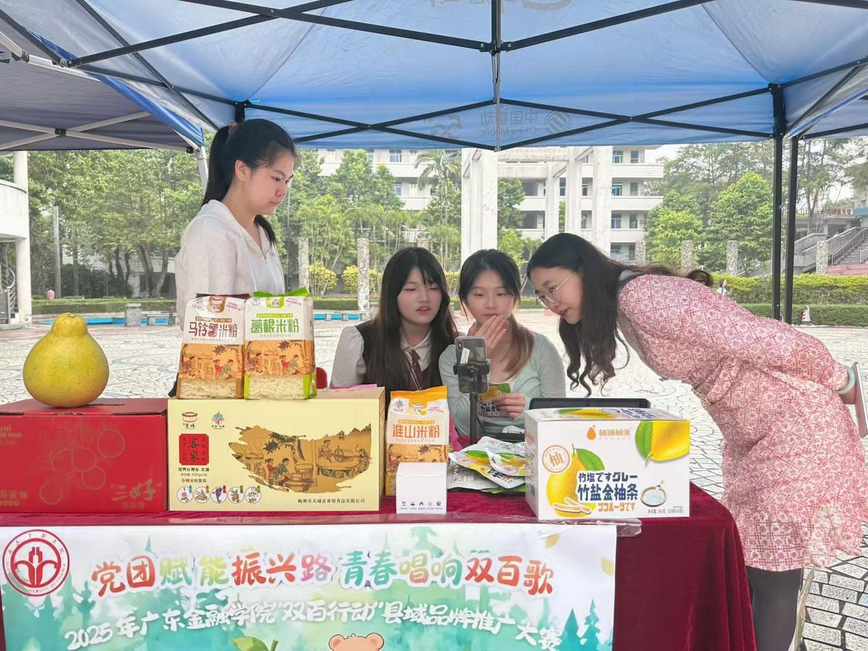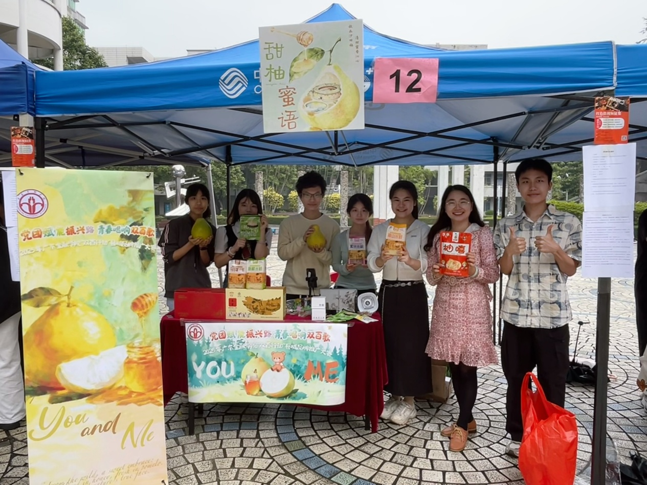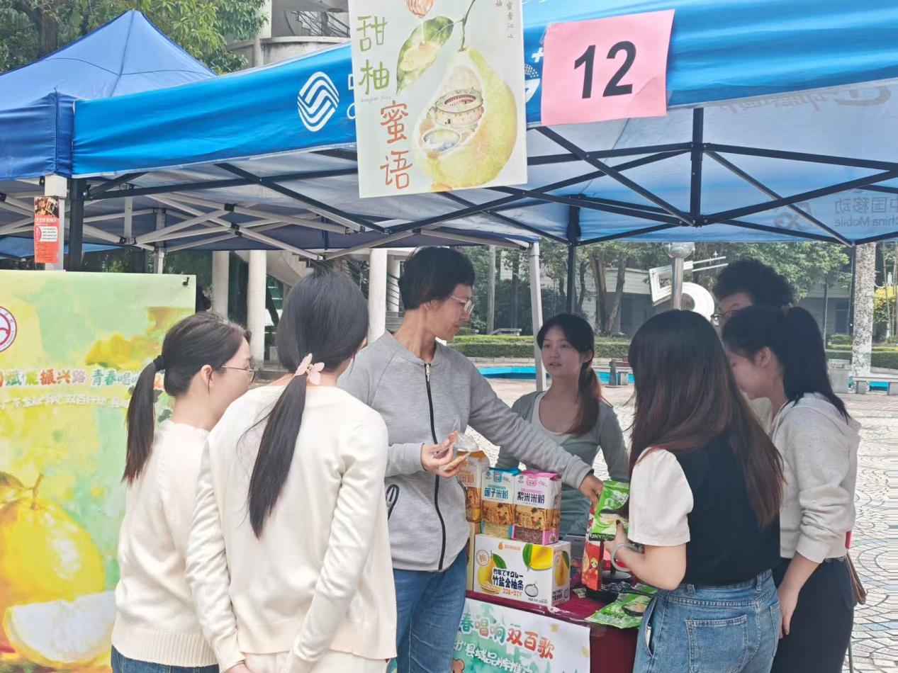 为深入贯彻国家乡村振兴战略,落实广东省“百县千镇万村高质量发展工程”与高校“双百行动”部署要求,beat365唯一官方网站“双百行动”县域品牌推广大赛线下销售活动近日在校本部青年文化广场顺利开展。beat365唯一官方网站积极响应,由朱冰霞老师指导的2024级英语专业学生吴滋欣、何梓杭、吴境镱、黄俊和国教院学生曾曦组成了一个跨专业团队,以“甜柚蜜语”项目为依托参加了此次活动。团队以推广“广宁优品”“大埔优品”小程序特色产品为核心,开展线上线下融合的市场营销实践,在提升学生品牌策划与创新实践能力的同时,助力梅州大埔、肇庆广宁两地产业发展与市场推广。