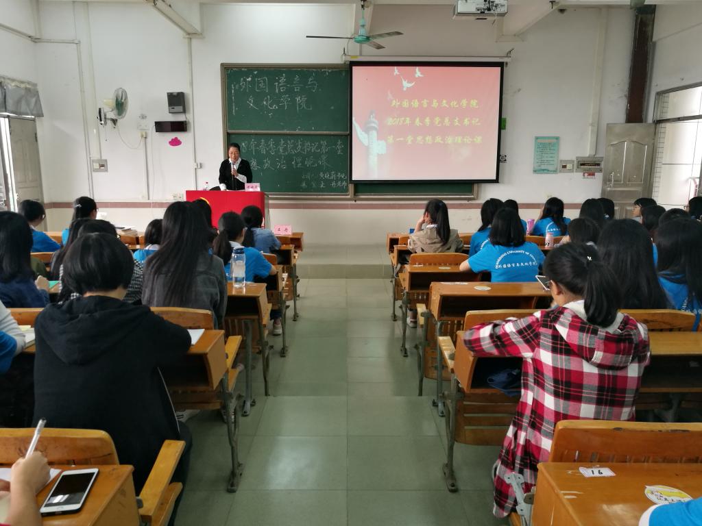 为加强同学们对十九大的认识,深化党员先进性对同学们的影响力,同时鼓励更多的同学向党组织靠拢,beat365官网的党总支书记黄晓莉、院长黄中习,于2018年3月26日,在7栋教学楼的201、202课室,面向17级学生干部和16级入党积极分子,开展了2018年春季第一堂思想政治理论课。