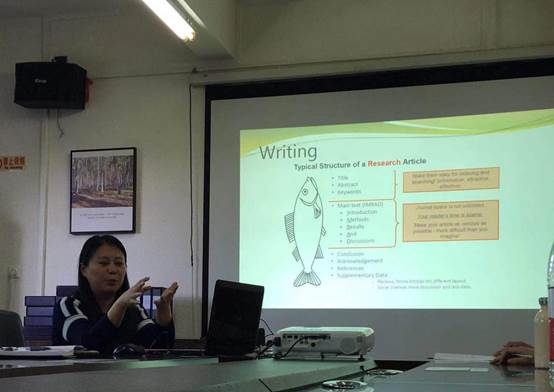 论坛第一位分享者刘晓琴博士具有丰富的国际期刊发表经验。刘博士从论文写作的第一步——信息收集开始谈起,指出国际刊物对投稿作者掌握的文献要求“既全又新”,进而介绍了在Google Scholar、Scopus、Web of Science等大型数据库检索文献的常用技巧。关于论文写作,刘博士重点介绍了国际期刊论文的基本框架,包括标题、摘要、关键词、正文的结构、结论、致谢、参考文献以及补充数据等,并且详细讲解了各部分写作的注意事项,特别提醒在座教师在呈现新方法方面下足功夫,在讨论结果时遵循一定的框架有序展开。关于论文投稿,刘博士分享了如何提高命中率的心得体会,包括抓准刊物的选题动向、按照刊物格式要求排版、引用刊物刊发过的论文、附上突显论文亮点的Cover Letter等。此外,刘博士还就国外期刊评审专家关注的关键要点、实证研究统计方法和工具的选用以及国际学术会议和专刊论文发表等问题畅谈了个人的感悟。