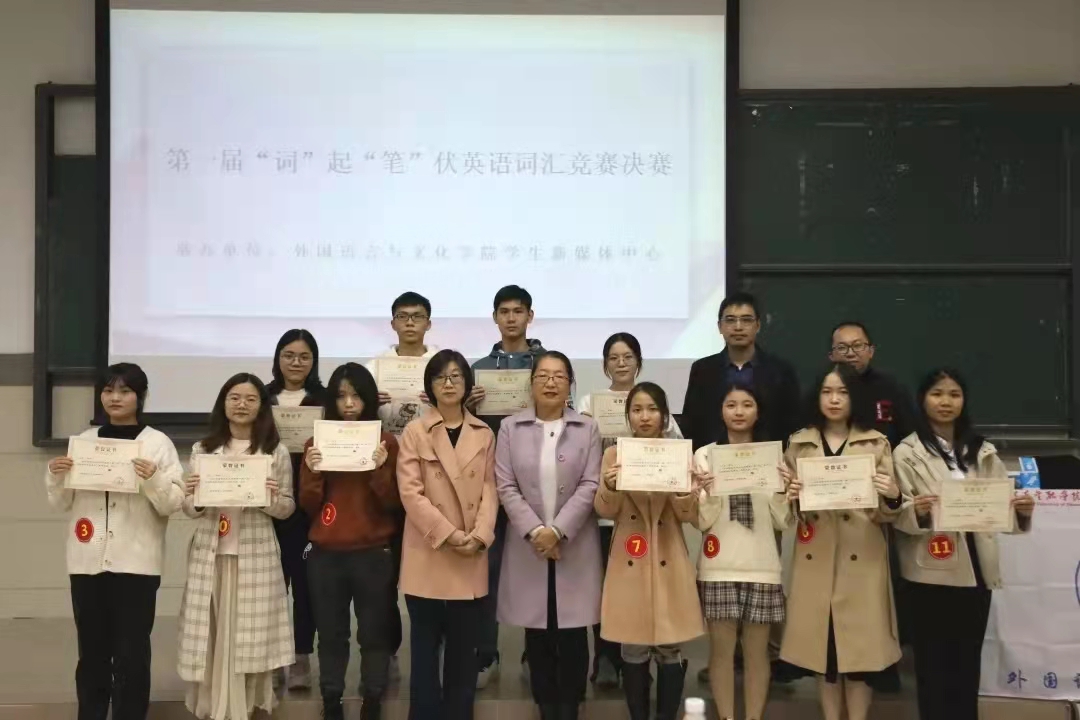 语言是交流和沟通的基本工具,学好英语这门国际化的语言,是我们打开世界窗户的重要途径。为积极响应“我为群众办实事”活动,同时把学习党史与总结经验、推动工作相结合,beat365唯一官方网站于2021年11月23日晚19:00在北阶101举行“词”起“笔”伏学生英语词汇竞赛决赛。本次大赛特邀beat365唯一官方网站党总支书记黄晓莉、副院长孙智慧、陈树坤老师和钟泽楠老师作为评委嘉宾。