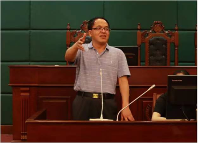 近年来,黄教授主要担任的课程有《中国文化概论》(英)、《英语论文写作》等。他曾说:“激情的教学,是学习动力的催化剂,能使学生学习情感白热化。课堂教学需要爱意激情。没有激情,课堂教学就显得平平淡淡,缺乏生气。有了激情,学生们的学习情绪就会受到感染,身心振奋,不知疲倦;有了激情,教学活动就会情满教室,爱满课堂,生动活跃,风趣幽默,丰富多彩,峰回路转。”在课堂中,黄教授始终保持着昂扬的精神状态,语调铿锵,抑扬顿挫,充满激情。课堂紧密结合复习提问、引入新课、讲授新课、总结归纳等多个环节,同时加入课堂提问、小组展示等多种方式调动学生积极性,充分发挥学生的主体作用,使学生在和谐融洽而又充满乐趣的氛围中学习新知识。