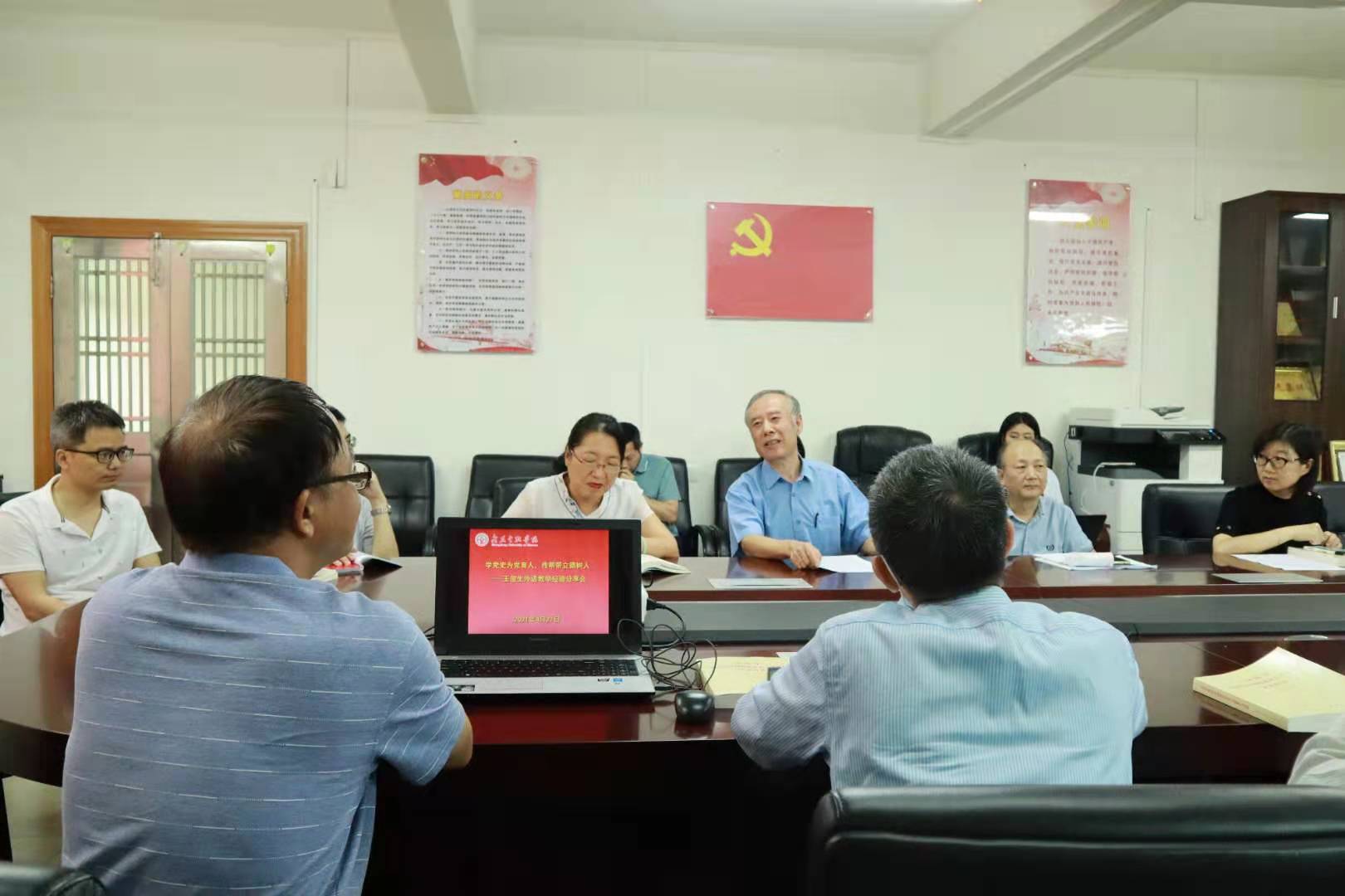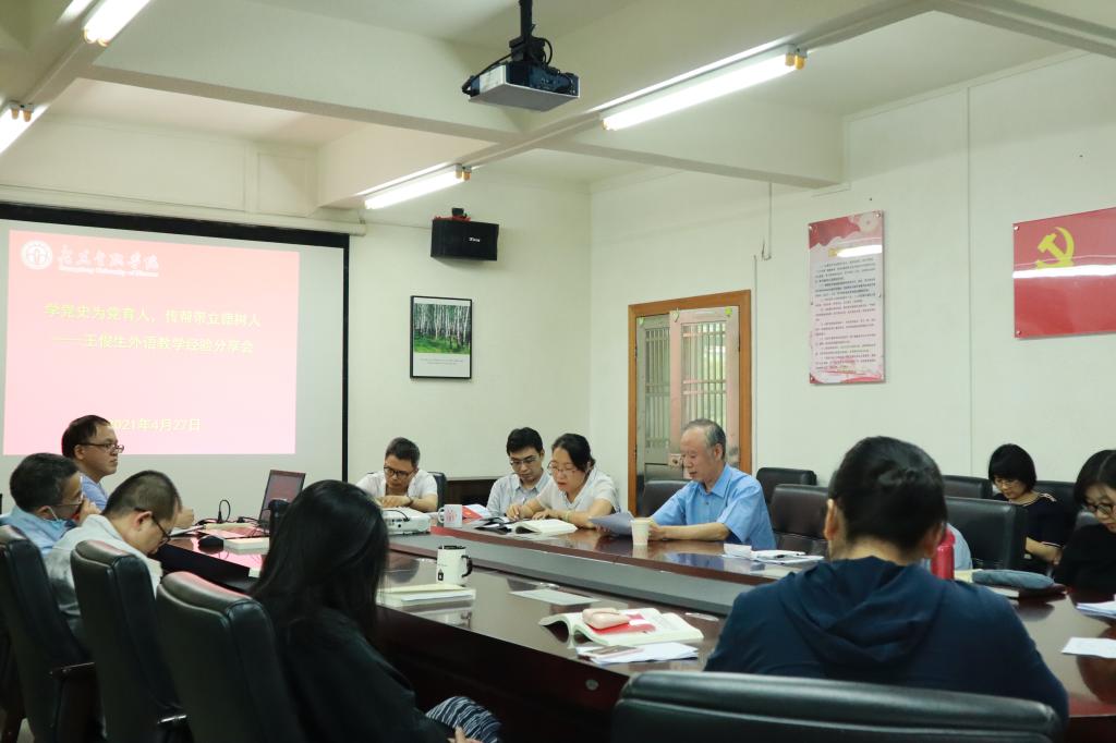 2021年4月27日,结合党史学习教育,激励beat365唯一官方网站党员教师牢记为党育人、为国育才的初心使命,学院特邀学校督导专家王俊生教授开展主题为“学党史为党育人,传帮带立德树人”外语教学经验分享会,党总支书记黄晓莉主持会议。