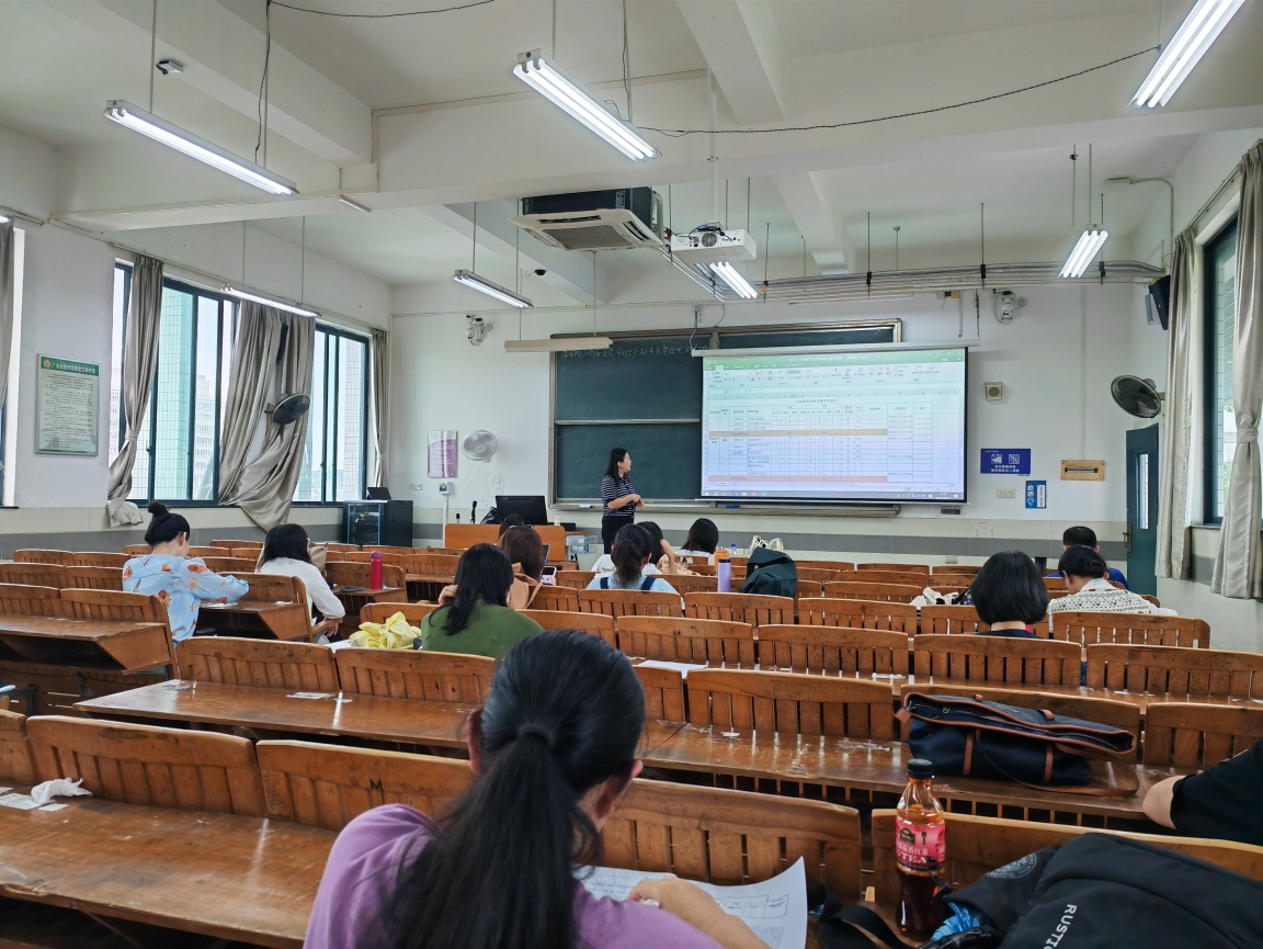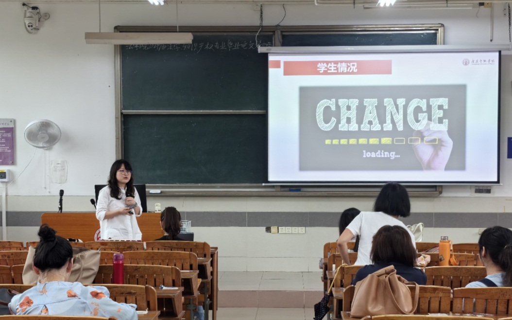 会议第二项内容是开展教研活动,邀请本学期评教名列前茅的魏渊渊、余薇两位老师开展教研分享活动。魏渊渊老师做了题为“变化与挑战”的专题分享,针对课程性质及学情分析突出能力培养,设计教学活动,体现了学生中心,产出导向的理念。渊渊老师从学生的信息搜集能力、拓展阅读练习、多样化作业设计等角度分享了自己的创新教学心得,她指出,必须顺应时代发展需要,改变思路,采用“数字+”教学设计,满足学生多样化的需求,才能提高教学效果,提升教学质量。