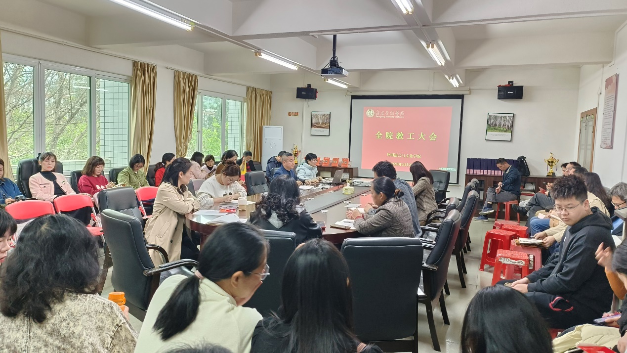 2月22日,beat365唯一官方网站召开了全院教工大会,会议旨在布置新学期工作,明确学院发展方向和目标。大会由黄庆雄书记主持,涂兵兰院长、陈树坤副院长、甘容辉副院长和洪溪珧副院长等学院领导出席,全体教职员工参加了此次会议。