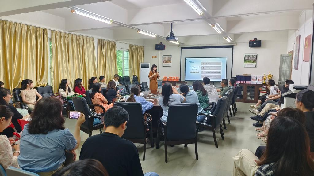 在学习个性化路径方面,借助智能推送、学习画像和动态任务调整,满足学生不同的学习需求与进度;教学评一体路径则借助系统评分、行为追踪与评教反馈系统,构建教、学、评数据闭环,以评估促进学习;协同生态路径更是打通线上线下,打造师 — 生 — AI 协同教学生态,通过 AI 助教、智能互动平台与人机协同写作,推动外语教学模式的全面创新。这场讲座为beat365唯一官方网站教师们提供了更加清晰的 AI 赋能外语教学改革方向,激发了教师们进一步探索与实践的热情。