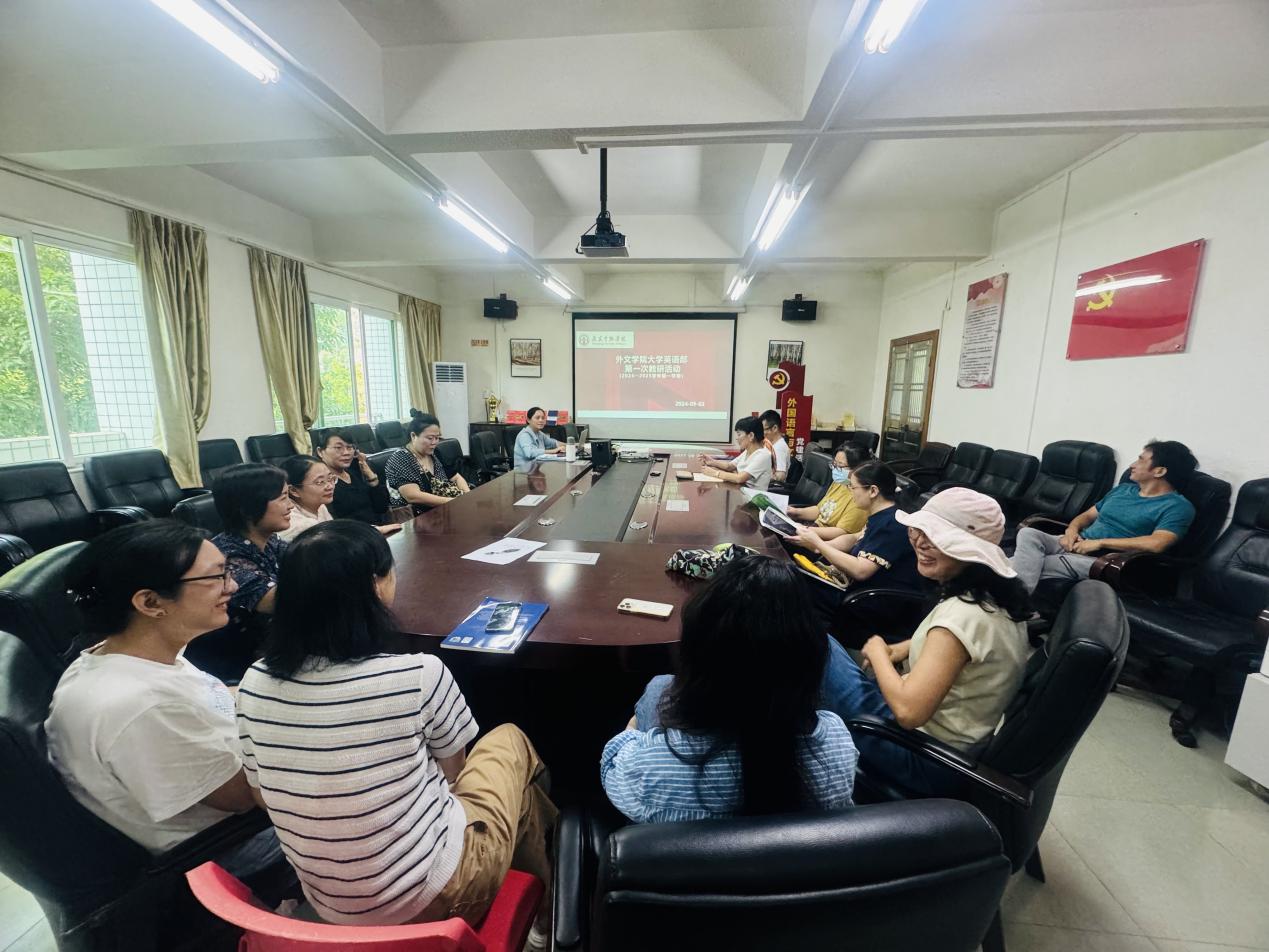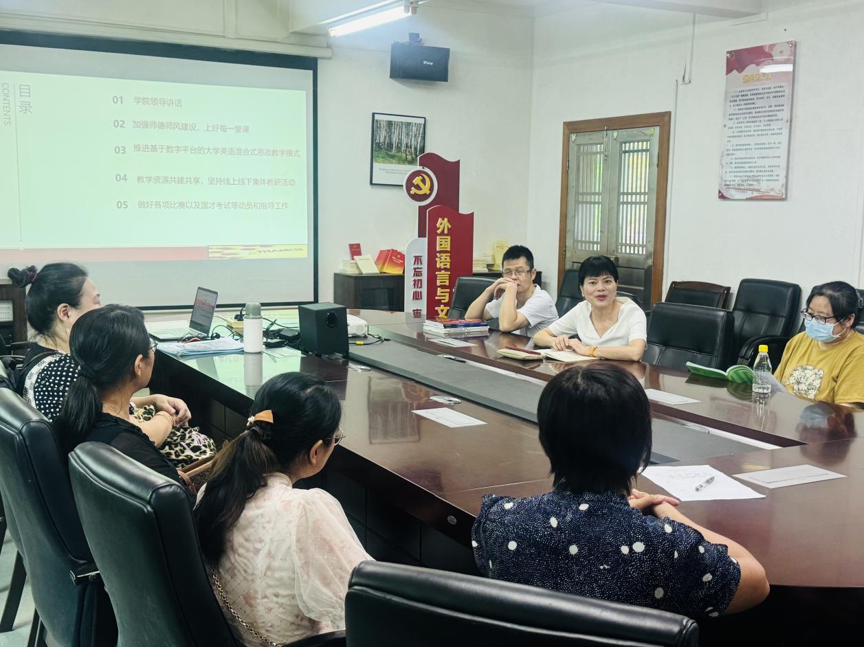 2024年9月3日下午,beat365唯一官方网站大学英语部在学院会议室举行了新学期首次教研活动。此次会议甘容辉副院长主持,部门全体教师参加,旨在布置新学期工作任务,并就大学英语数字化教学转型、数字教学资源建设与使用、教学竞赛、期末考试命题等工作进行了深入探讨。本次教研活动特别邀请了涂兵兰院长参会,对大学英语的新学期各项工作进行指导。