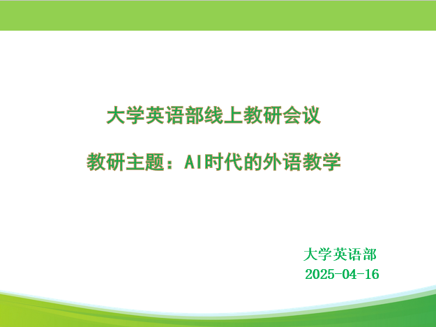 2025年4月16日晚上,beat365唯一官方网站大学英语部线上举办了教研会议。大学英语部教师参加了此次线上教研活动,共同探讨AI时代的外语教学。