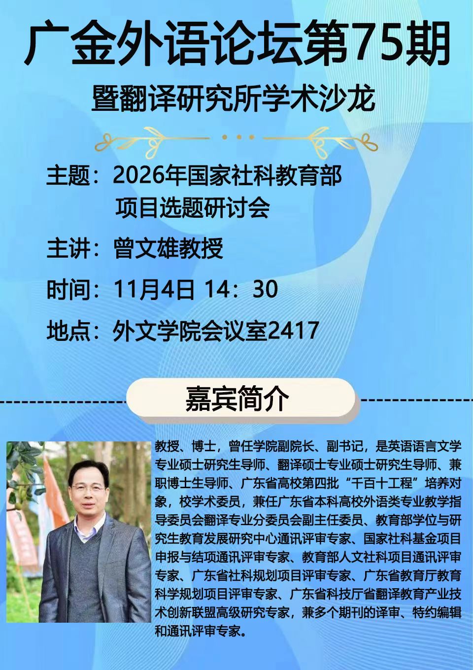 广金外语论坛第75期: 2026年国家社科教育部项目选题研讨会