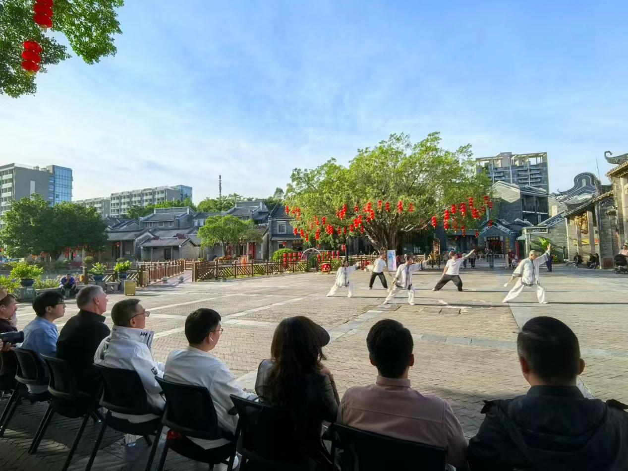 11月27日至29日,许浩哲同学陪同安东尼·埃德加一行开展岭南文化与武术交流活动。活动期间,一行人先后走访均安牛仔城、李小龙乐园、岭南印象园、广州商学院等多地,实地探访牛仔产业全链条,体验功夫学堂、观摩太极展演、观看醒狮功夫秀与李小龙诞辰85周年纪念演出,参观李小龙纪念馆、淡隐霍公祠及非遗展示区,深入了解岭南产业特色、民俗文化、建筑底蕴与非遗技艺。此外,双方还参与“武术文化国际传播”专题座谈会及岑能大师诞辰百年纪念活动,围绕武术传承与国际传播等议题交流。许浩哲全程负责翻译工作,保障跨文化交流与研讨顺畅推进。