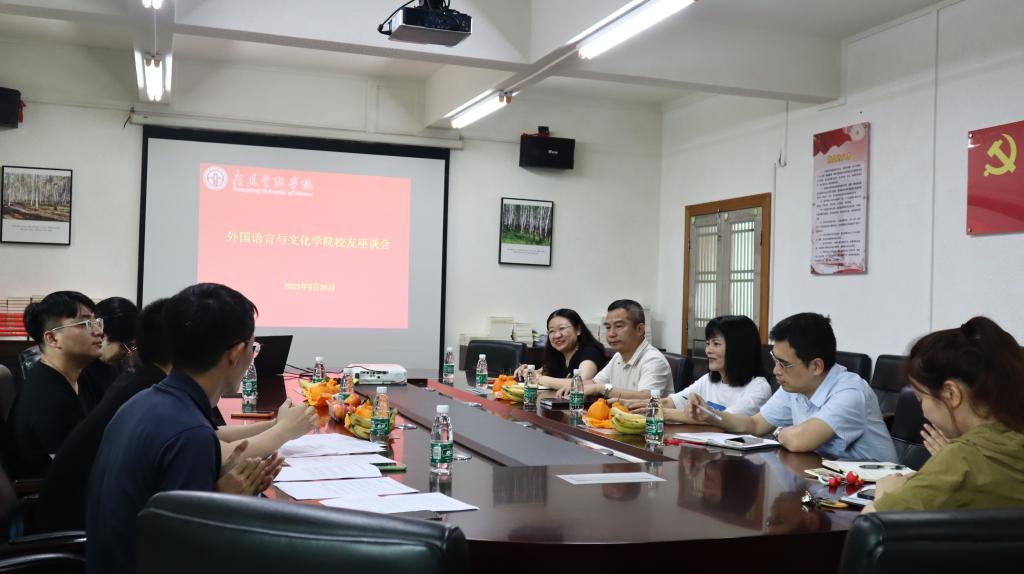 会上,学院领导对校友积极回校参加活动,为学院高质量发展献言献策表示了热烈的欢迎和衷心的感谢,介绍了学院目前的专业特色、人才培养以及毕业生就业等方面的情况。校友们则从企业角度畅谈人才需求、市场导向,对培养企业亟需的高素质外语人才提出了自己的意见和建议。双方围绕校企合作、专业建设和课程建设、运用人工智能助力外语学习等进行了深度交流。
