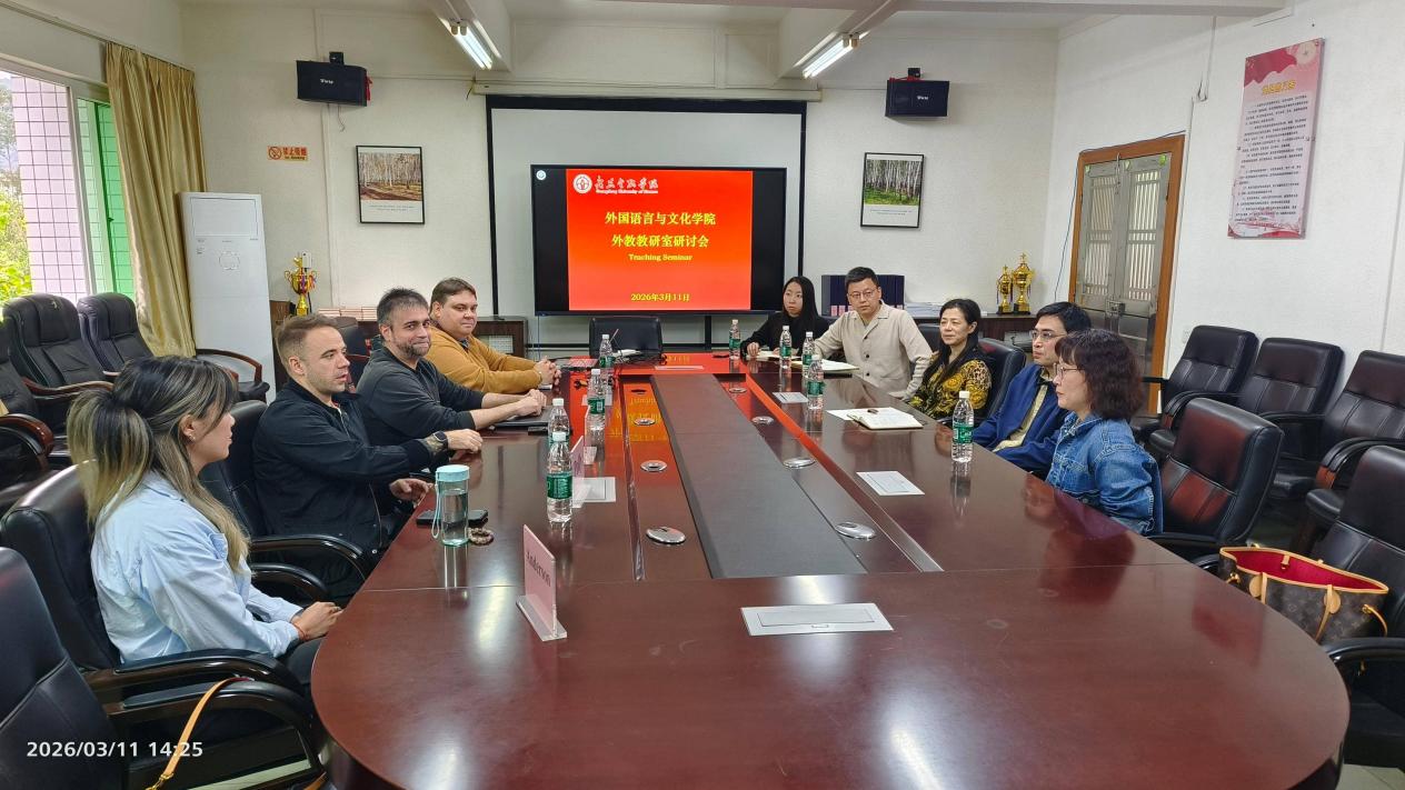 会议伊始,与会外教围绕各自承担的《英语口语》《商务英语口语》《西班牙语》等课程,分享了最新的教学经验。针对外语教学中常见的“学生不敢开口、不愿开口”的难题,外籍教师们重点探讨了如何有效调动学生的参与性。外教们分享了“在做中学(Learning by Doing)”的实战案例,主张通过采访、游戏、演讲、辩论等沉浸式活动,让学生在真实的任务驱动下自然开口,消除对犯错的恐惧。教师们还展示了如何利用数智化工具创设互动情境,通过即时反馈机制激发学生的表达欲望。大家一致认为,课堂应从“教师讲、学生听”转变为“学生做、教师导”,让语言学习在动态的实践中发生。
